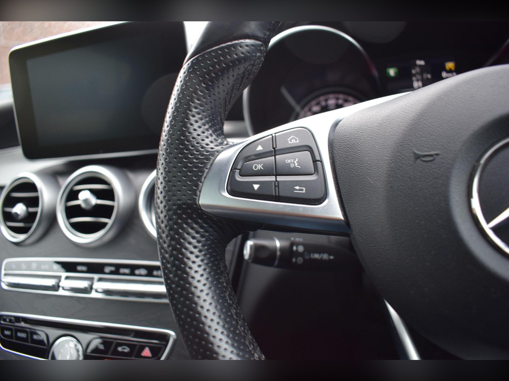 - Steering Wheel - 3-Spoke AMG in Leather with Flattened Lower Section and Perforated Grip Area
